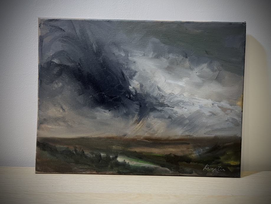 Tamni i mračni pejzaž - ulje na platnu - mrak - oblaci na nebu - oluja