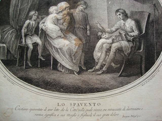 LO SPAVENTO - Strah (Cristiano spaventato di aver letto che la Citta nella grande quale vivera era minacciata di destruzione e rovina , significa a sua Moglie e figlinoli il suo gran dolore )