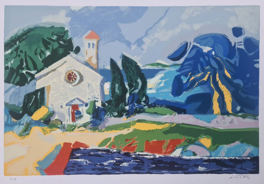 Tihomir Lončar "Crkvica uz morev 2" svilotisak serigrafija 50x70cm;