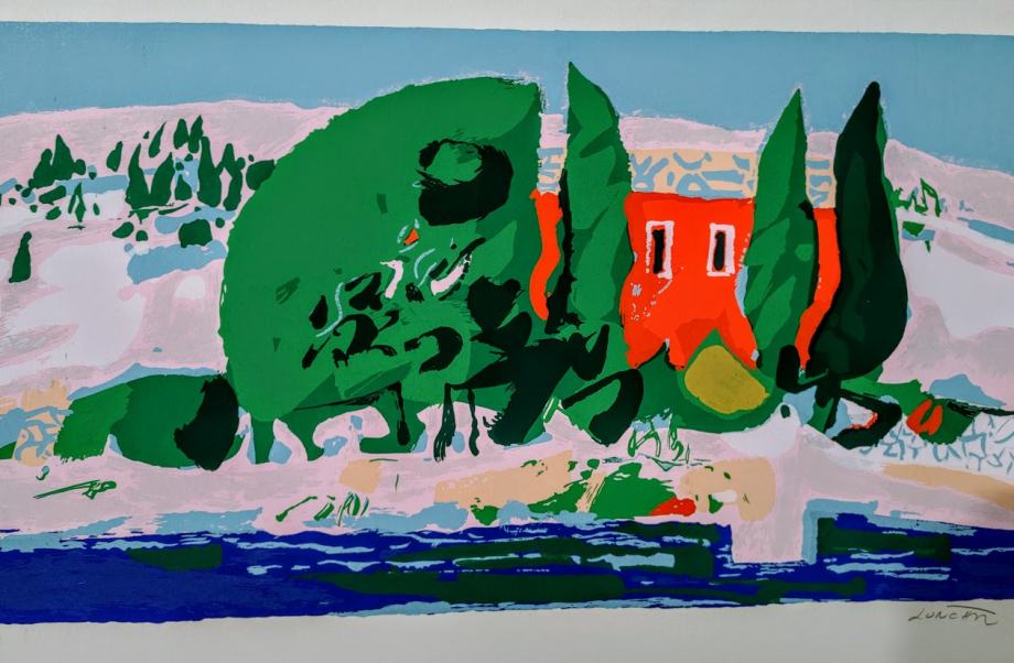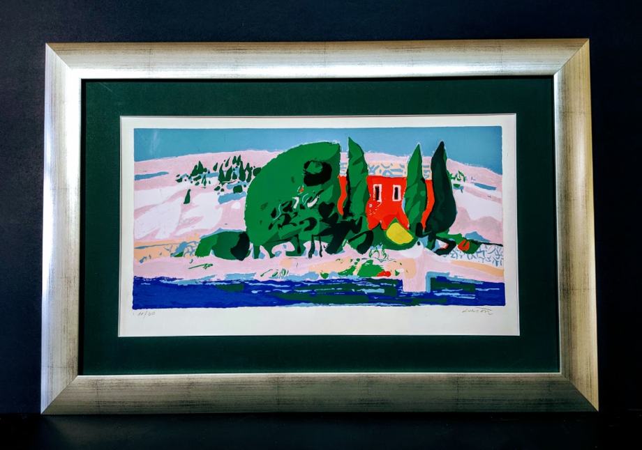 Grafika Tihomir Lončar, uramljena, novi okvir, dimenzije s okvirom 81x56 cm.
