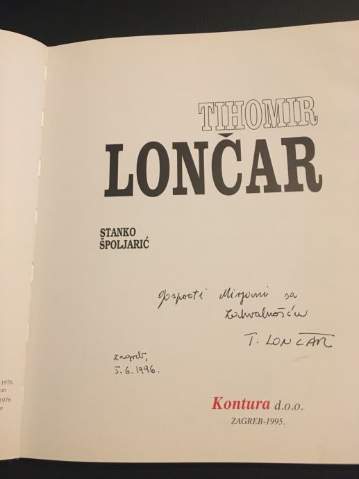 Potpisana monografija poznatog hrvatskog akademskog slikara Tihomira Lončara. Stanko Špoljarić, Kontura Zagreb 1995., 31x26str., tvrdi uvez, 164 str.