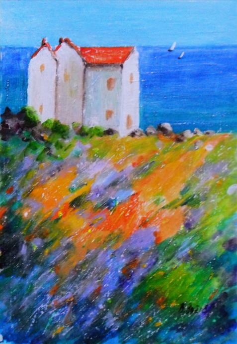 Akrili različitih dimenzija; od 25 - 30 - 35 cm , slikani na čvrstoj podlozi - (papir 450 gr. odlične kvalitete Daler & Rowney) prvoklasnim bojama Rembrandt - Talens.