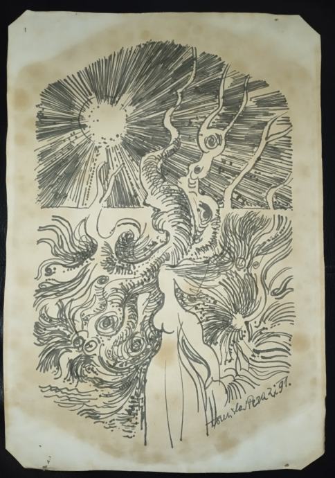 Akademski slikar. Nije uokvireno. Stanje vidljivo na fotografijama. Dimenzije lista cca 42x29cm.