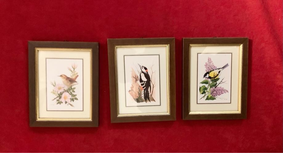 Tri male skike u drvenom okviru velicine 12x15 cm, cijena za sve tri
