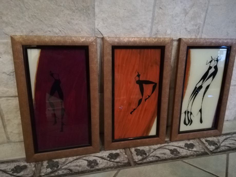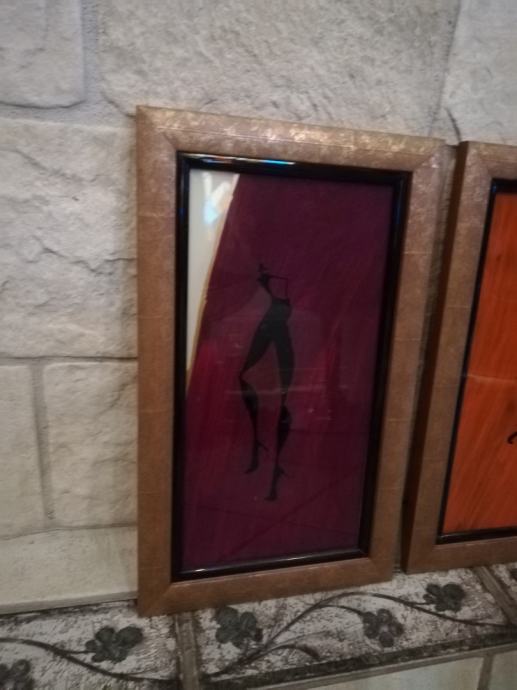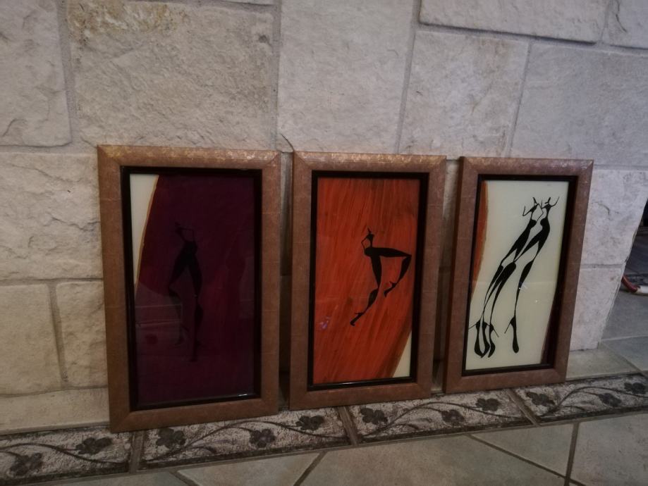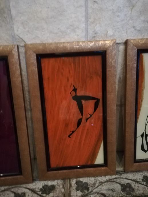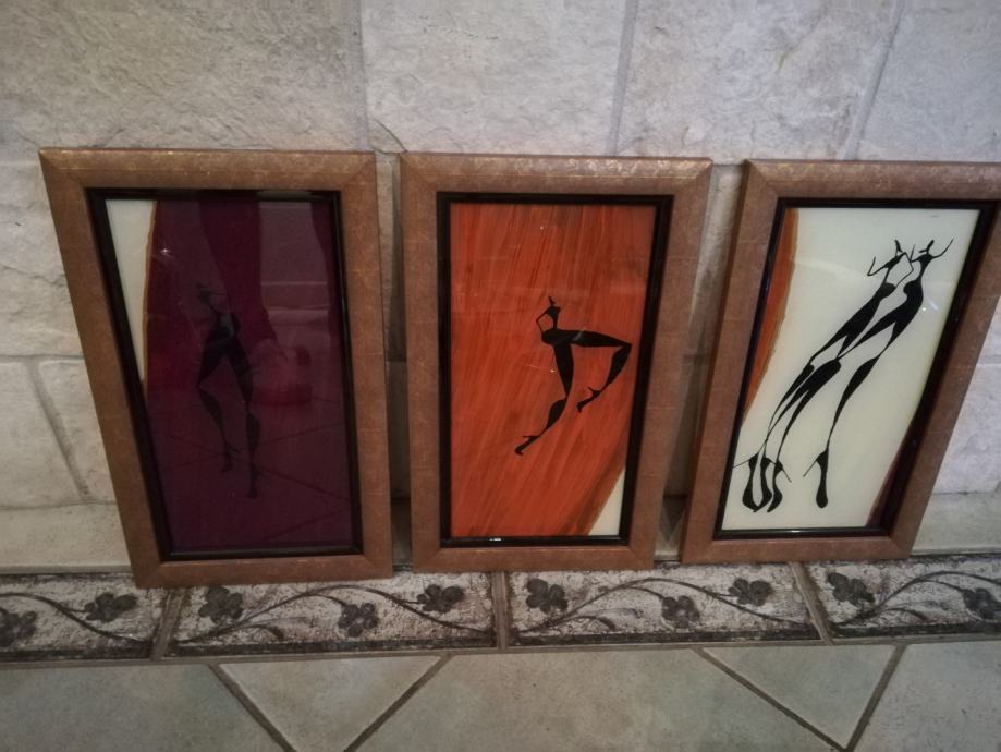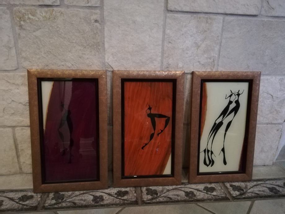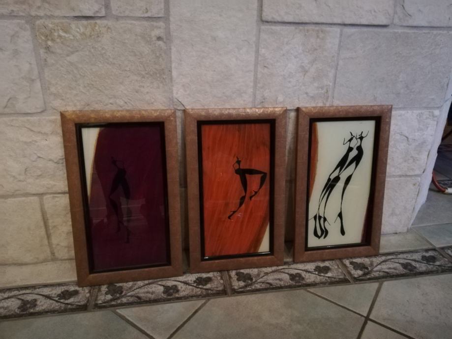 Triptih - trodijelna slika - ulje na staklu, uramljene, autora: tihomira Ćirjaka iz Osijeka. Dimenzije: 26,0 x 43,5 cm, debljina okvira. 4,2 cm.