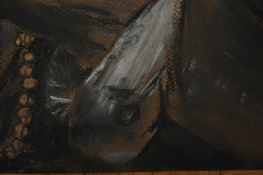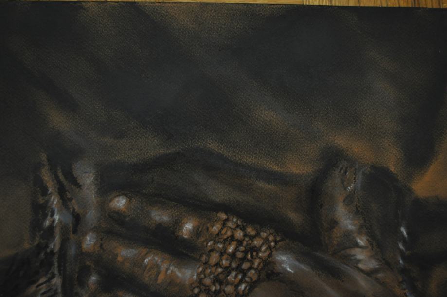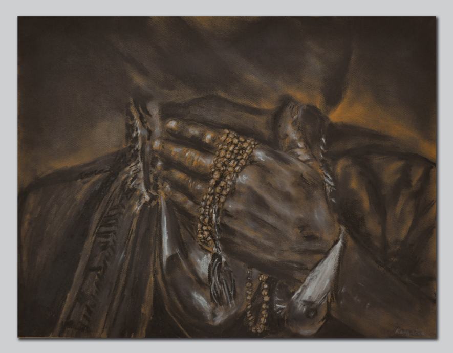 Ugljen na papiru - starac s krunicom - strah - očaj - mračni motiv
