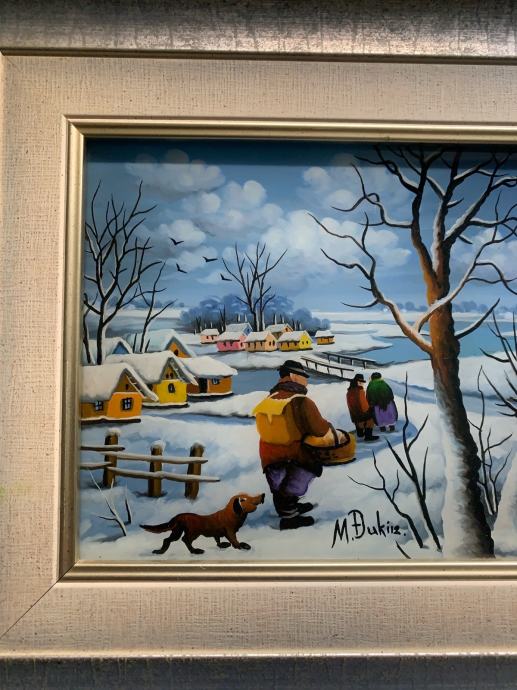 Autor je Martin Đukin, majstor podravske naive, Zimski dan, cca 30/30 cm s okvirom.