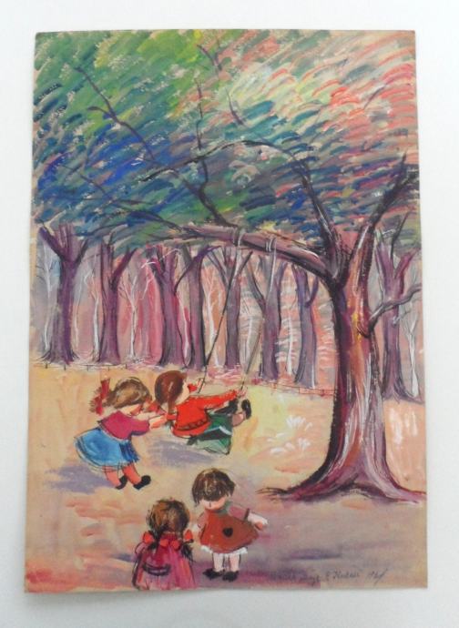 ULJE, DJECA U PARKU, E.KNEŽIĆ(NEČITKO IME)POSVETA, POTPIS I GOD1961.DOLJE DESNODIMENZIJE 49X34,8CM