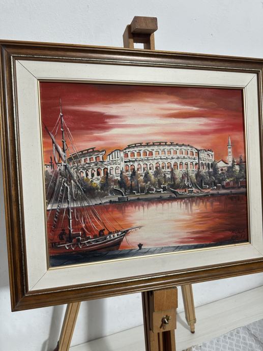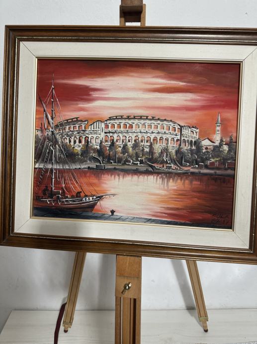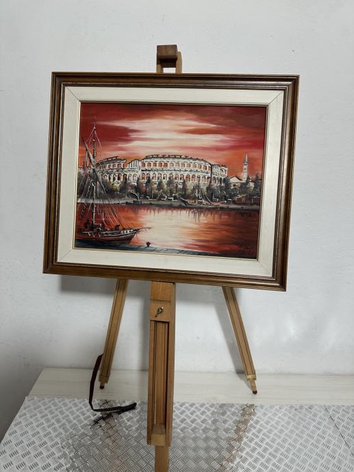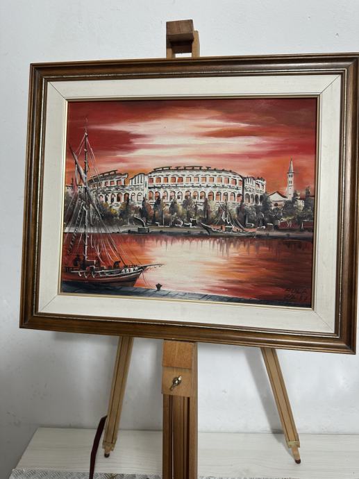 Ulje na drvetu "Arena Pula" sa potpisom,48x40cm,saljem i postom