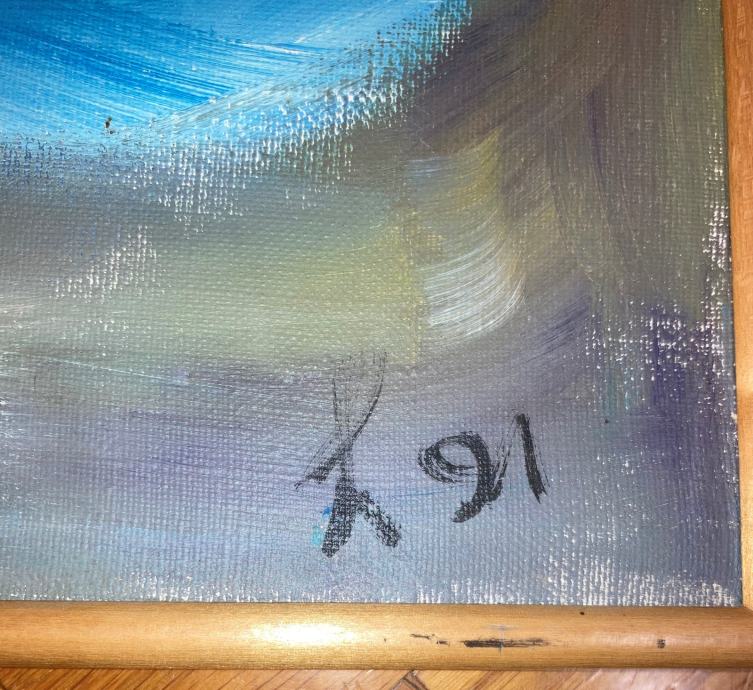 Ulje na platnu iz 1991. Potpisano, meni nepoznati autor (mislim da je u pitanju akademski slikar Emil Robert Tanay, ali nisam siguran) .Dimenzije s okvirom 52x42cm.