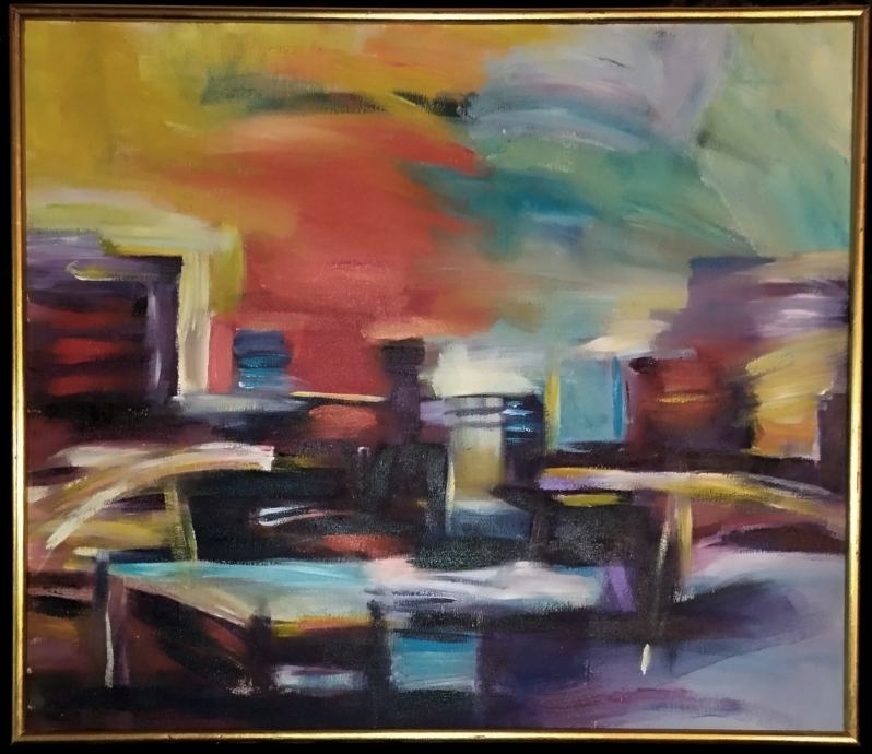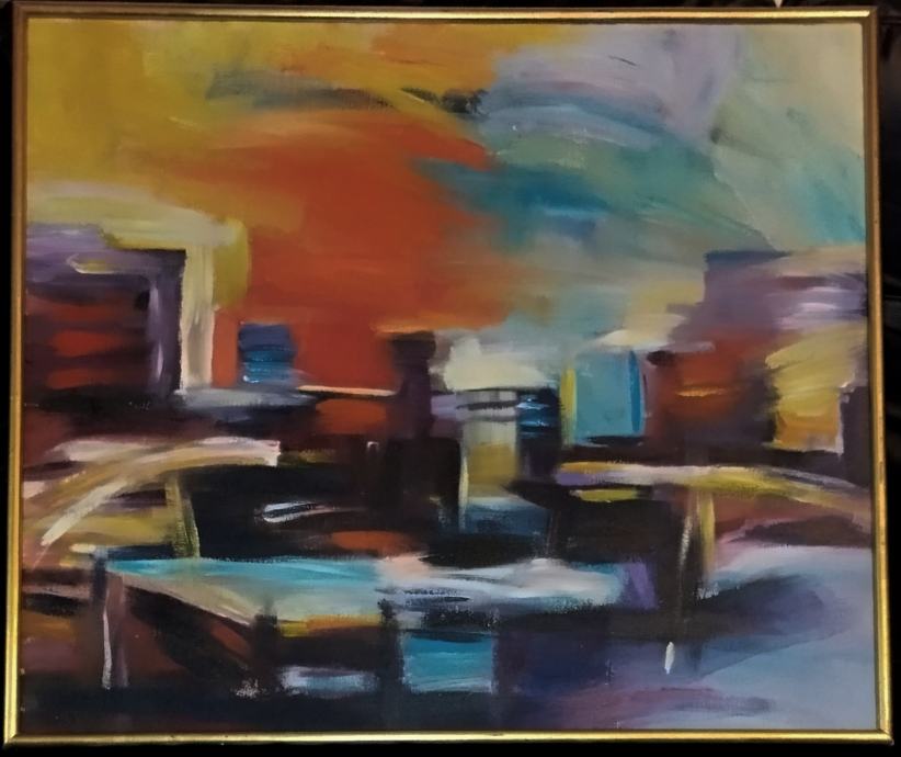 Apstraktno ulje na platnu, meni nepoznatog autora (nije potpisano). Galerijski uramljeno. Ukupne dimenzije 72x62cm.