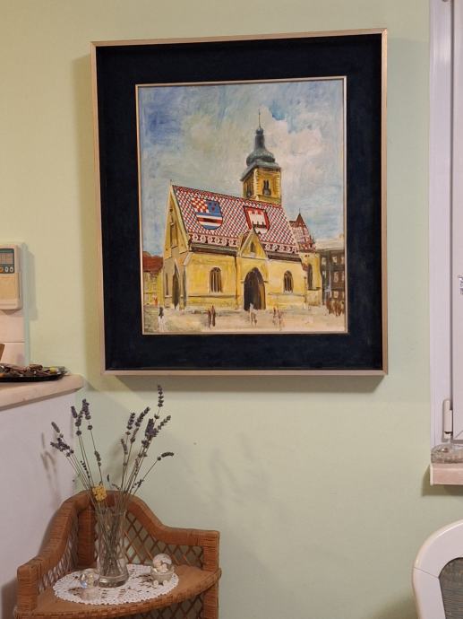 Slika je naslikana za vrijeme Jugoslavije, za gospodina koji je u to vrijeme živio u Švicarskoj. Zbog hrvatskih motiva, slikar koji je u to vrijeme živio i stvarao u Zagrebu, nije ju htio potpisati iz straha da ne bude kažnjen. Vanjske dimenzije okvira su V80cm × Š70cm Cijena slike je 500Eura.