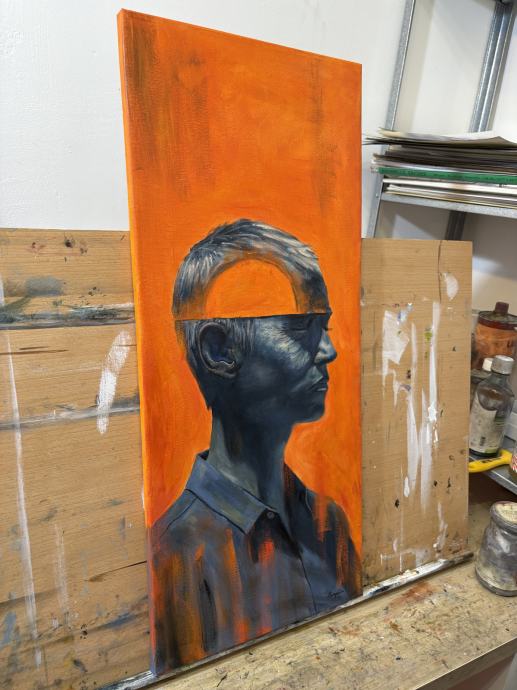 Ulje na platnu, expresionizam, intenzivna narančasta boja pozadine