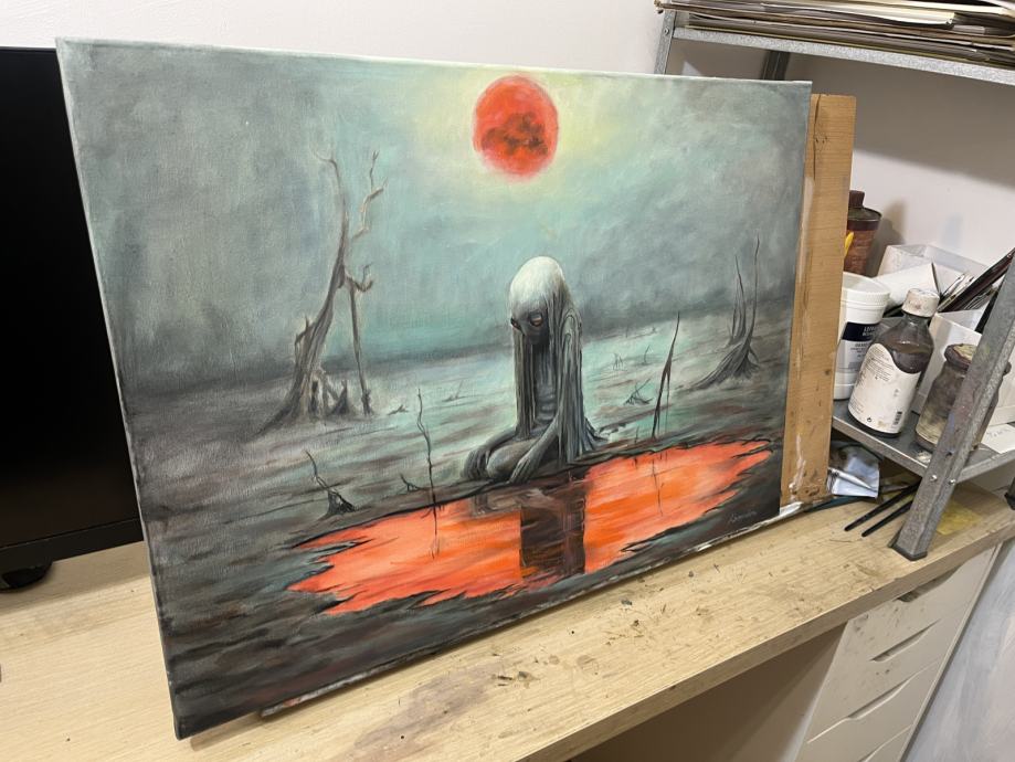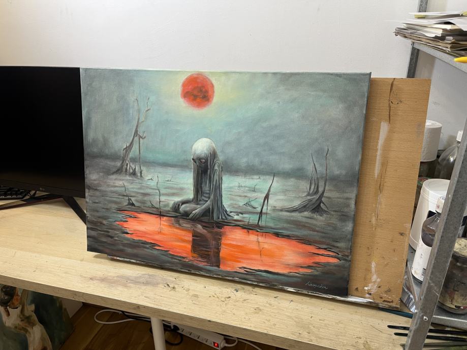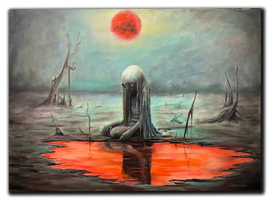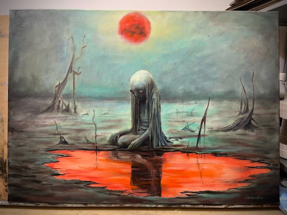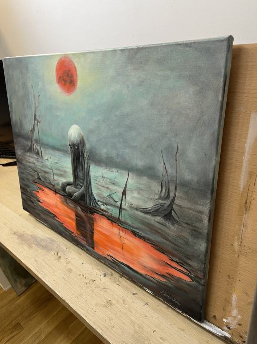 Ulje na platnu, horor slika, velika slika, samoća, usamljenost, tuga
