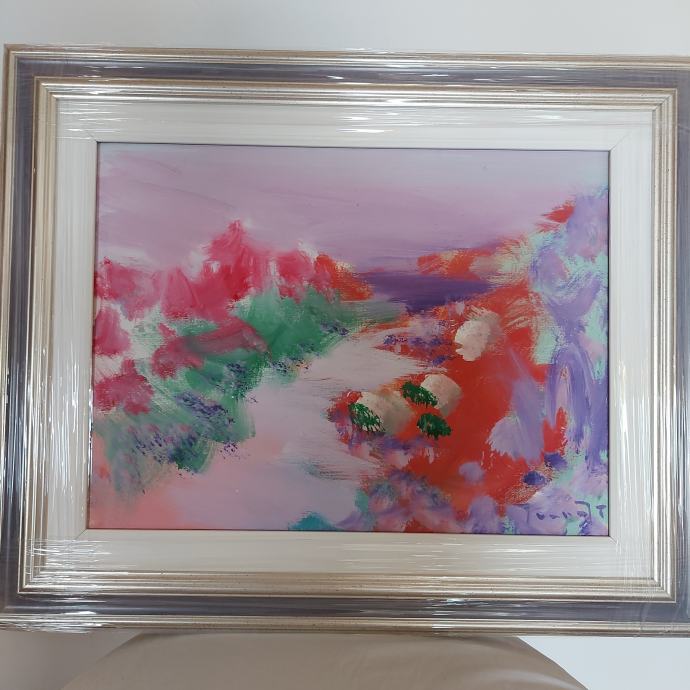 Krajolik, ulje na platnu poznate dubrovačke slikarice Ivane Trostman. Dimenzije slike 40x30 cm ( 54 x 44 ) , uokvireno u novi okvir, moguća dostava poštom.