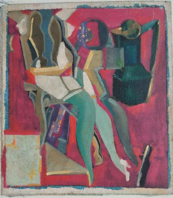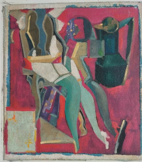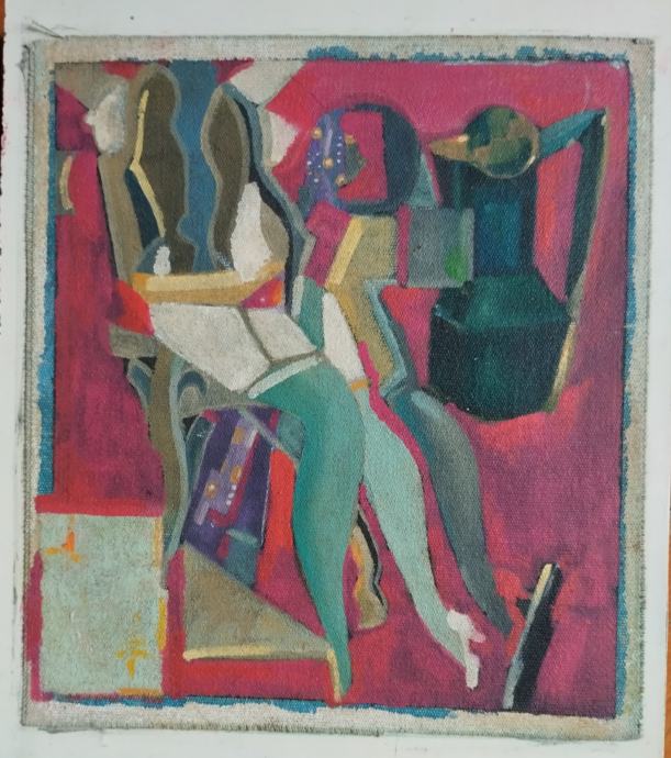 Ulje na platnu (kaširano na drvo), nepoznati autor. Kubizam. Dimenzije 22/19cm.