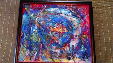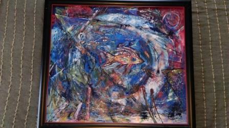 Uokvireno ulje na platnu Karine Sladović,70x80.