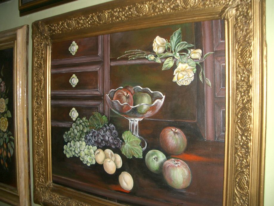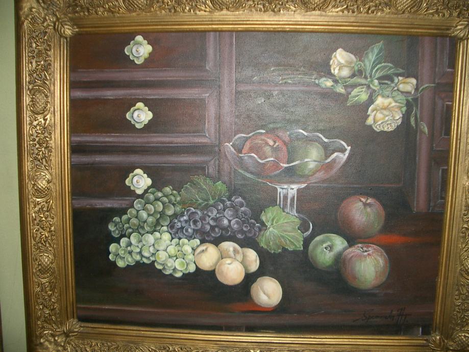 ULJE na platnu mrtva priroda retro motiv u svježem izdanju opremljeno, autor: spomenka horvat turčin. veličina slike sa okvirom je 80 x 70 cm.