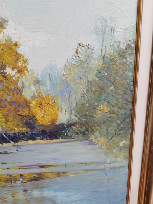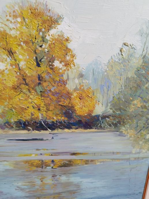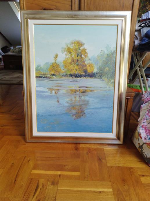 Slika 60*80cm akademskog slikara Tomo Hrgota hrast uz obalu rijeke Drave iz 1999godine u tehnici ulja na platnu.Slika je u izuzetno dobrom stanju bez ikakvih oštećenja.