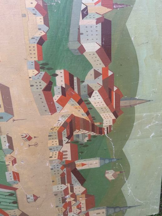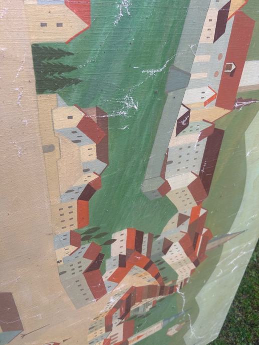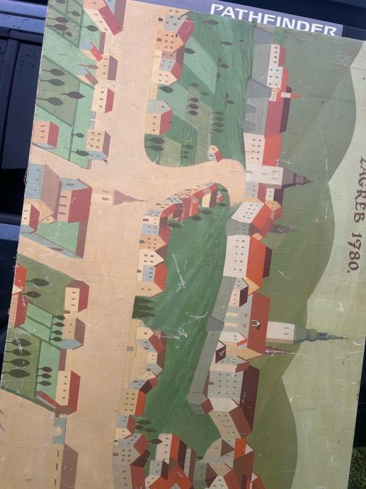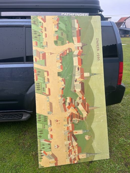 Veliko ulje na platnu,motiv grada Zagreba,nekada bilo u Gradskoj vjecnici na Gornjem Gradu,dimenzije 194 x 92