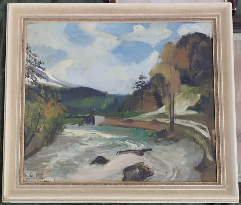 Ulje na platnu, nepoznati autor (potpis H. W.). Dimenzije s okvirom 71x63cm.