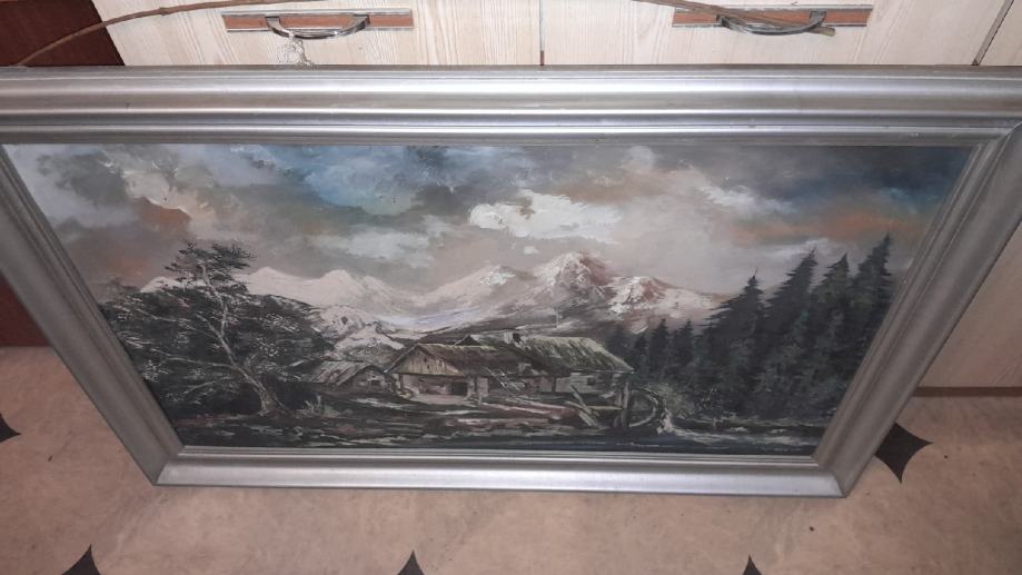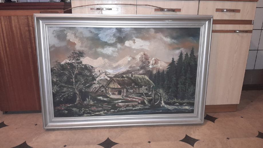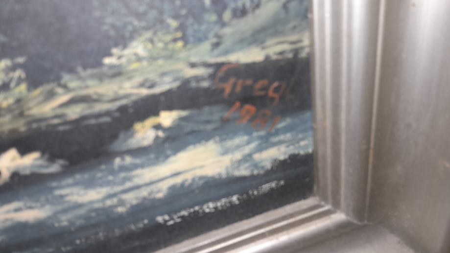 Ulje na platnu potpisani Gregl 1981,velika slika sa okvirom dimenzija 110x74,ne vidim oštećenja na slici