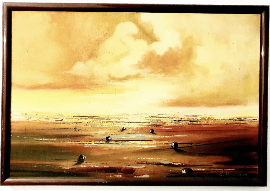 Uokvireno ulje na platnu dimenzija 64×43 cm.
