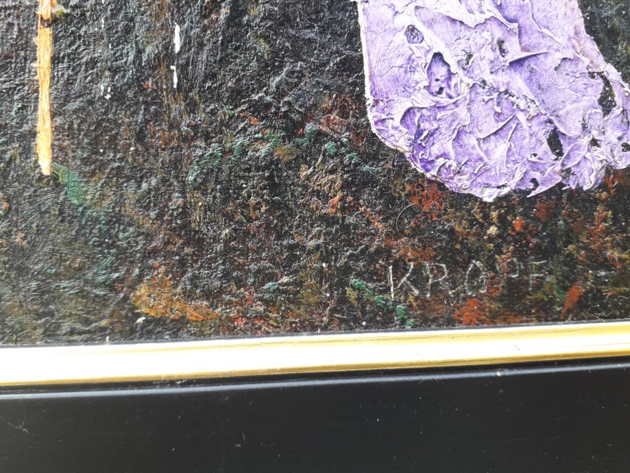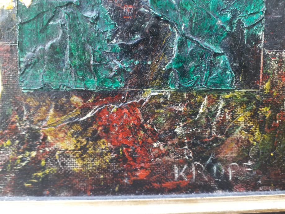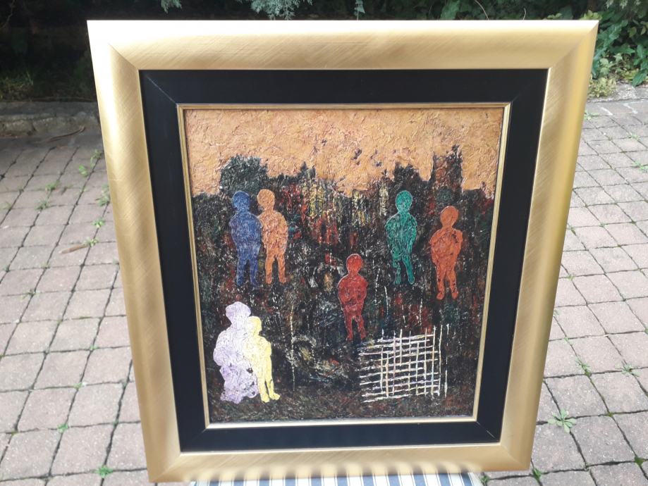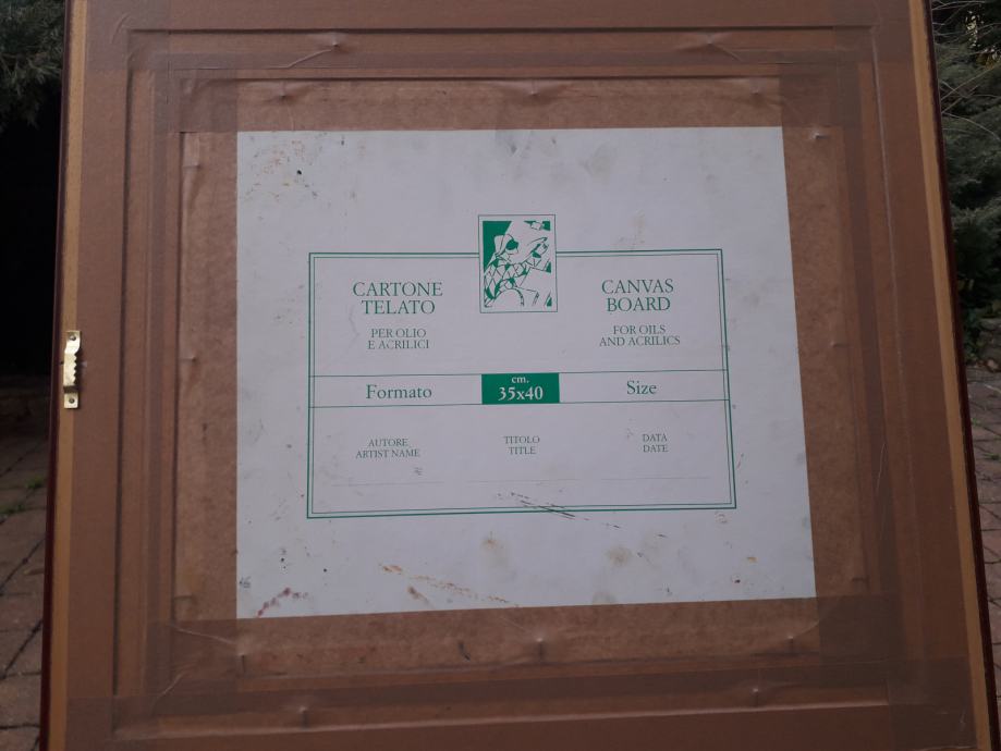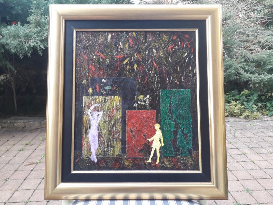 Tehnika je ulje/kombinirana. Dimenzije 40x35 bez okvira, 57x50 sa okvirom.