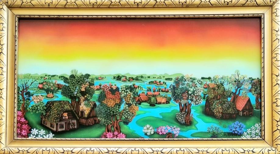 Ulje na staklu, Kirasić 90. dimenzije: 66x37cm, uokvireno