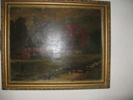Velika stara slika, ulje, vodenica, potpisano / necitljiv potpis autora / dimenzije visina 60cm, širina slike 73, u izuzetno očuvanom stanju silka na drvu/lesonitu i originalni okvir