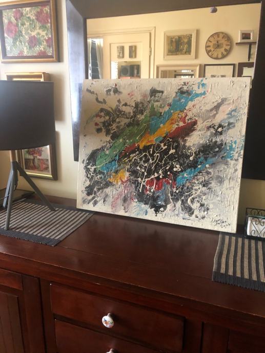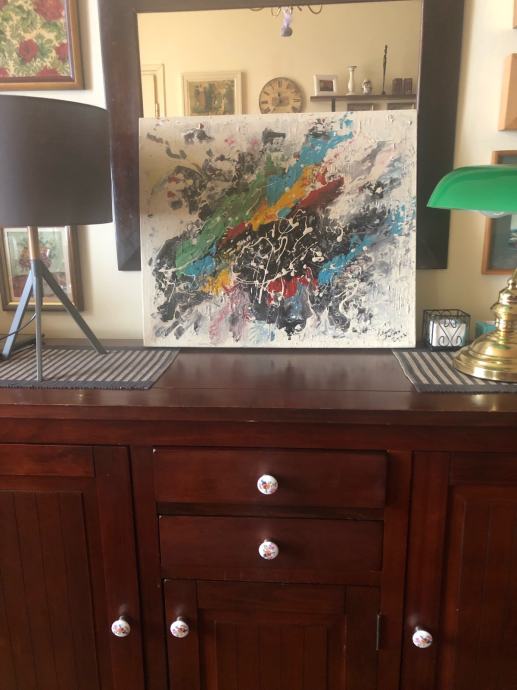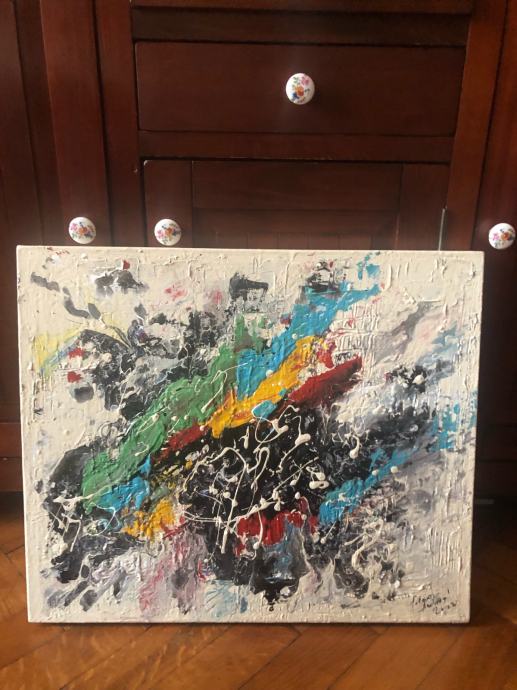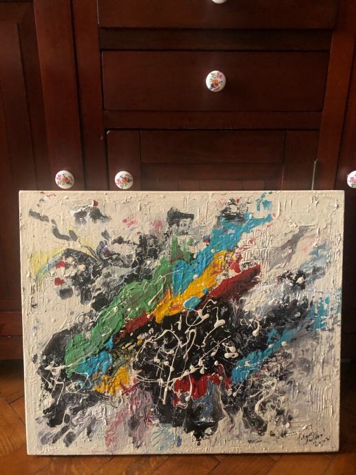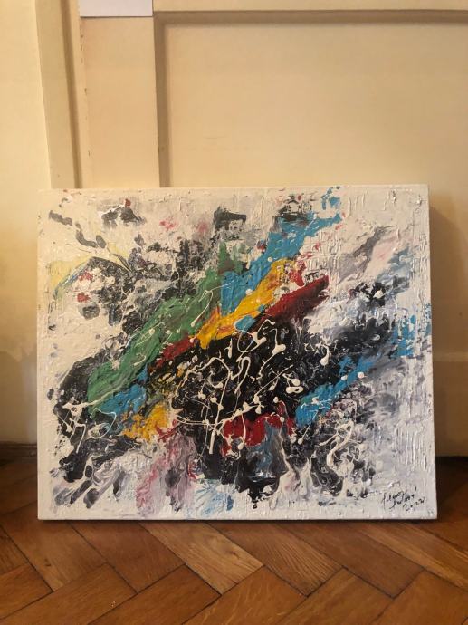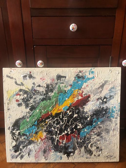 Umjetnička slika, 60x50, akril, debljina rame 4 cm. Za opremanje prostora i interijera. Može samostalno na zid ili uokvirena.
