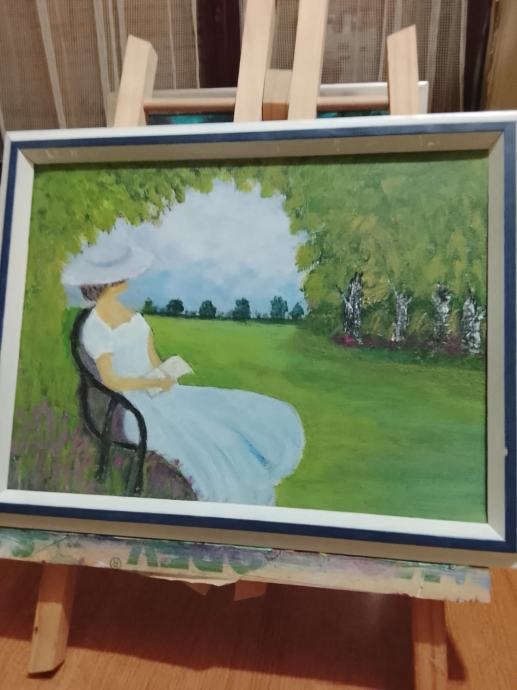 Slika sa ramom, akril na platnu. Dimenzije 27*21 mm.