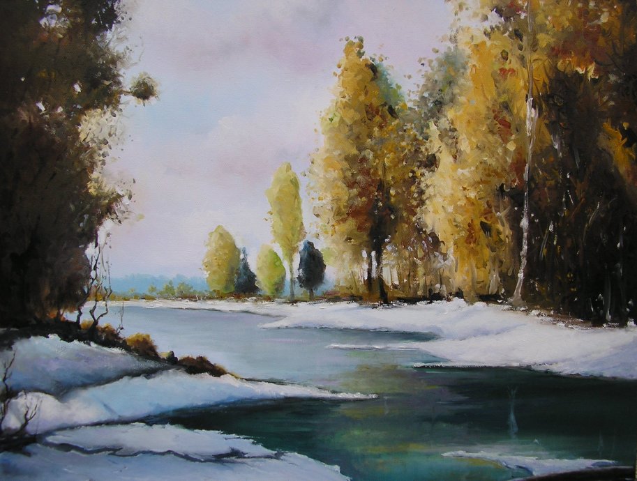 Ulje na platnu dimenzija 70x60 cm. Slika je stavljena u radnu ramu boje drveta širine 5 cm radi izlaganja na izložbama.