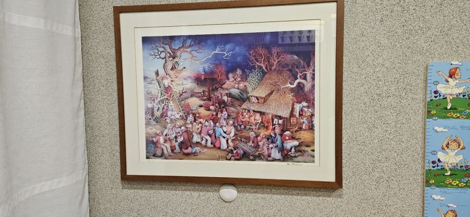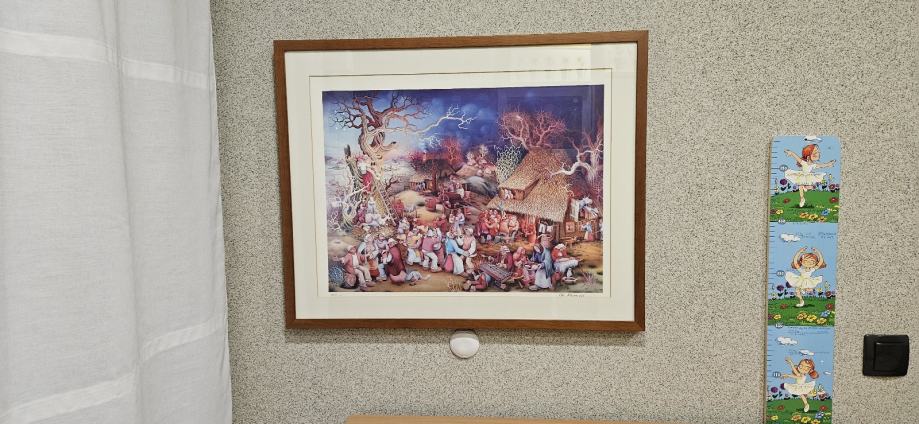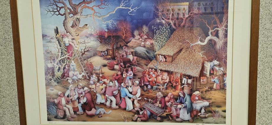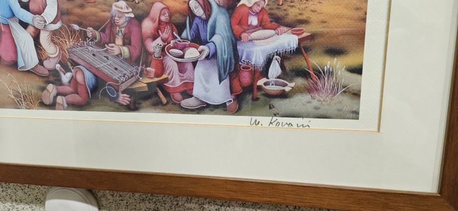 Umjetnička slika Mijo Kovačić Seoski ples dim. 71x57cm, uokvirena reprodukcija. Prodajem, Osijek