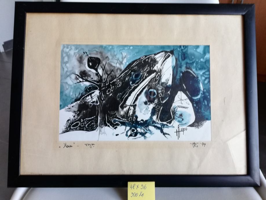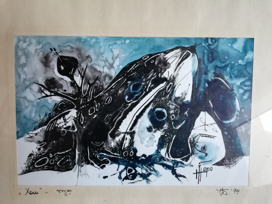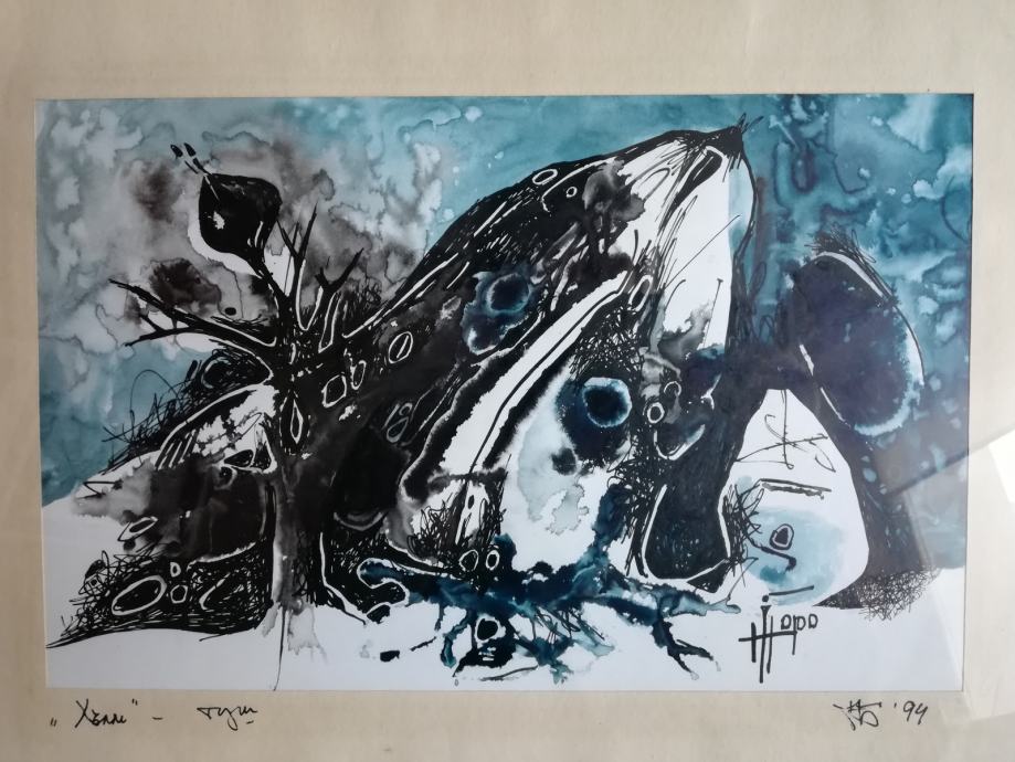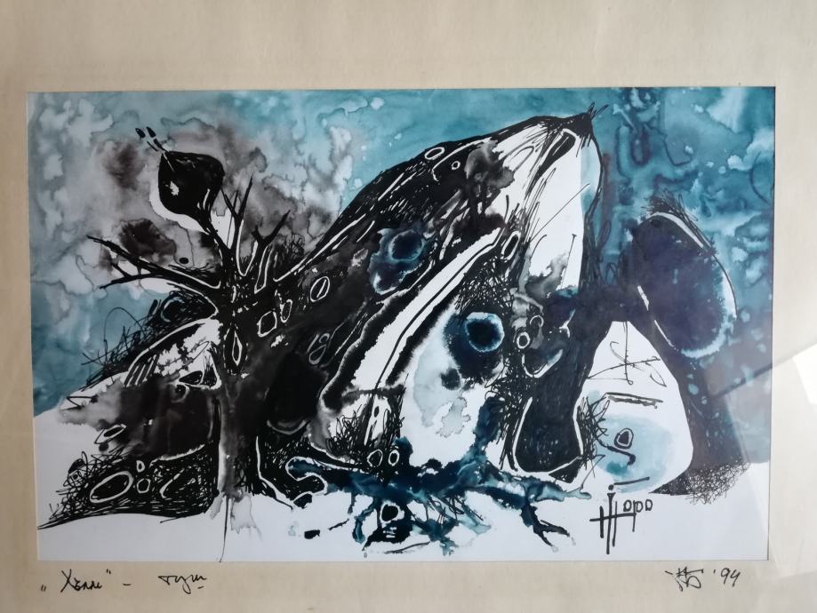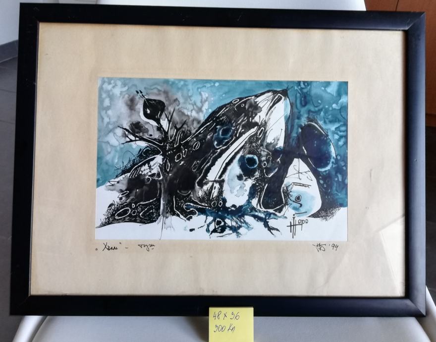 Bugarski akademski slikar. Kupljeno u galeriji u centru Sofije. Neobična kombinacija tuša i vodene boje. Dio osobne zbirke