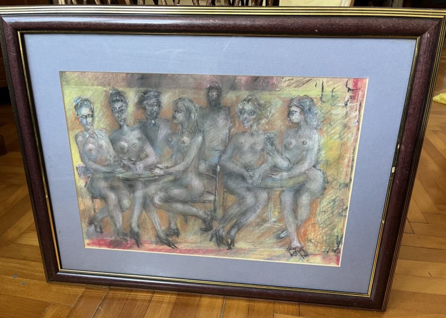 Prodajem umjetničku sliku koja predstavlja žene koje sjede za stolom.
