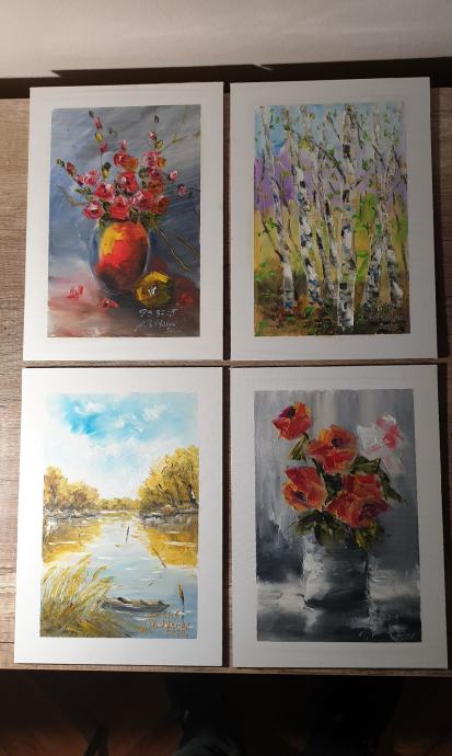 Format A4,ulje na slikarskom lesonitu,jako zgodne kao poklon u svakoj prilici...