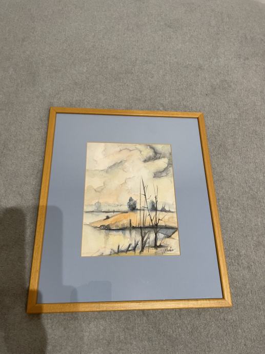 Umjetnička slika, tehnika akvarel. Potpisana od autora. Širina sa ramom 33cm, visina 39 cm.