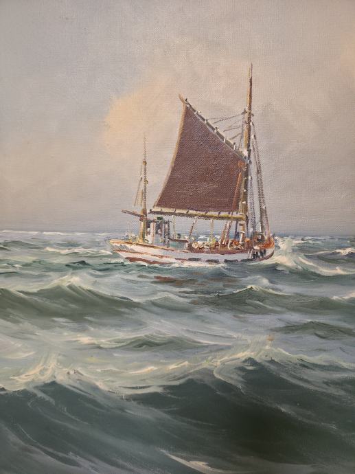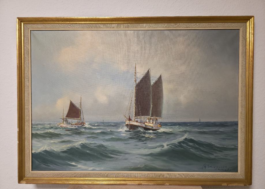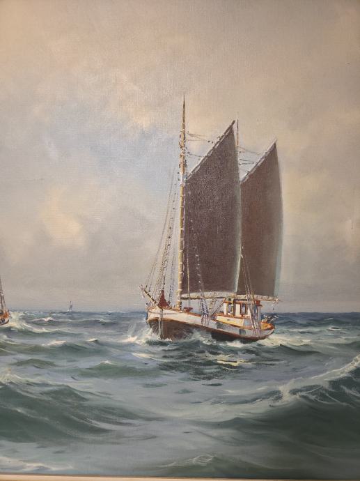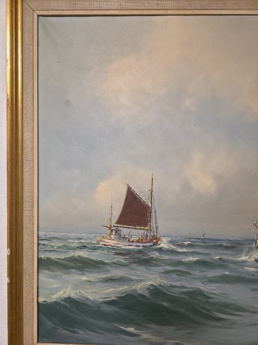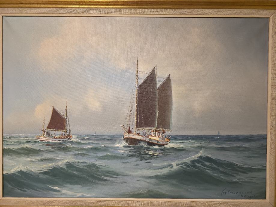 Slika brodova na moru rađena od Danskog slikara Vilhelm Theodor Skovgaard(1923-1993)