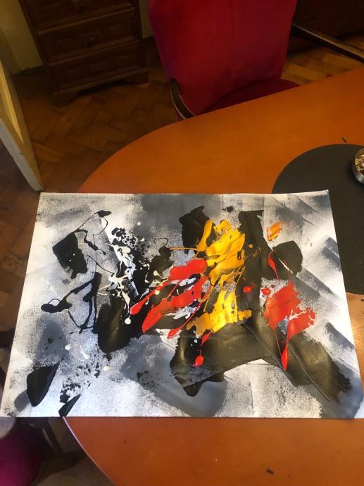 Prodajem umjetničku sliku, akril na papiru. Dim: 65x47. Potrebno uramiti, staklo, i okvir.