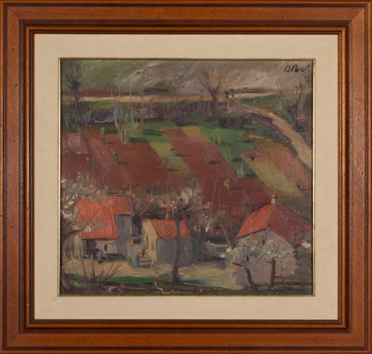 Umjetnička slika Pejzaž s potpisom, autorica Božena Ružić Vilhar - oko 1935 g., certifikat,