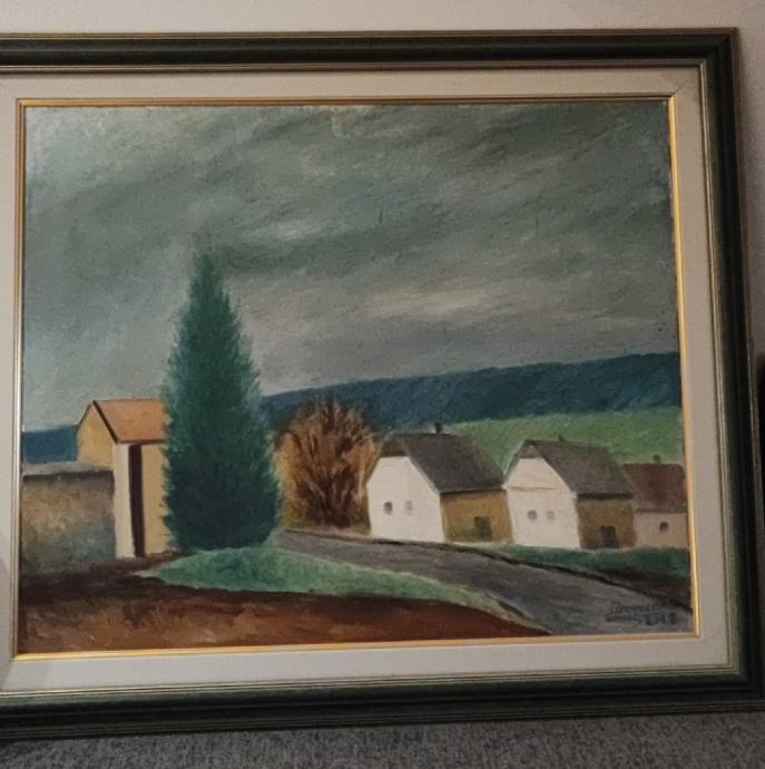 Umjetnička slika Selo sa okvirom, 73x65cm