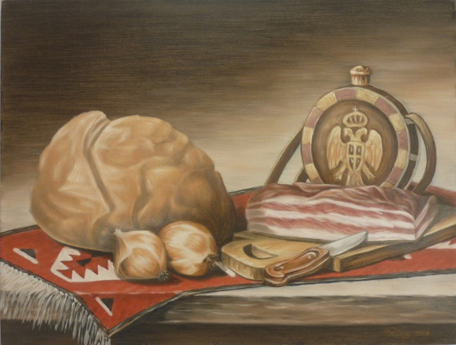 Tradicija 2 je umjetnička slika urađena u tehnici ulje na platnu ,dimenzija 49 x 37 cm , nije uramljena ,na blind ramu. Prazni zidovi su vrlo česti u mnogim domovima.Ukoliko i vi u stanu ili ugostiteljskim objektima i sličnim prostorima imate prazne zidove umjetničkom slikom ili slikama ćete ih učiniti puno zanimljivijim.Sa slikama prostorija poćinje da živi,odmor je za oko i dobija individualnu notu.Prazan zid može djelovati depresivno i otužno. Za njegov veseliji izgled nije potrebno puno sredstava.Kupovinom moje umjetničke slike možete da podstaknete emocije i sjećanja , da pokrenete vašu energiju i dobro raspoloženje.Moje slike za 34 godine rada krase mnoge domove i službene prostorije i restorane kako kod nas tako širom Svijeta .Cijene slika često ne moraju biti fiksne možemo se i dogovoriti.Za sve informacije se možete obratiti na pomenuti telefon ili e - mail ,ili možda doći lično.