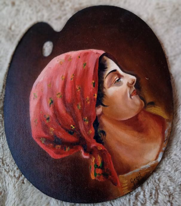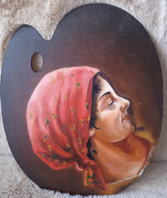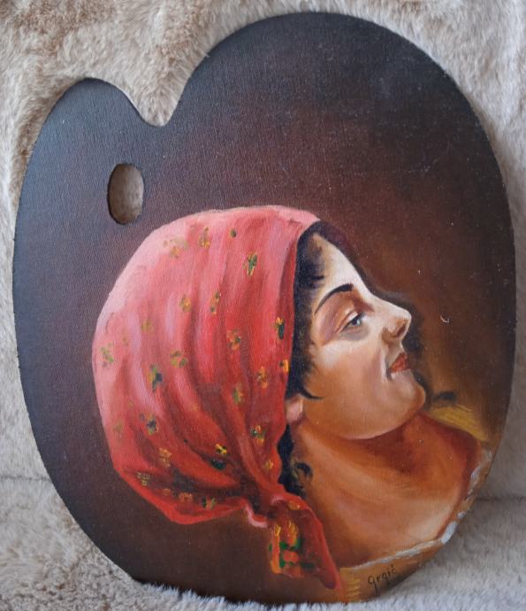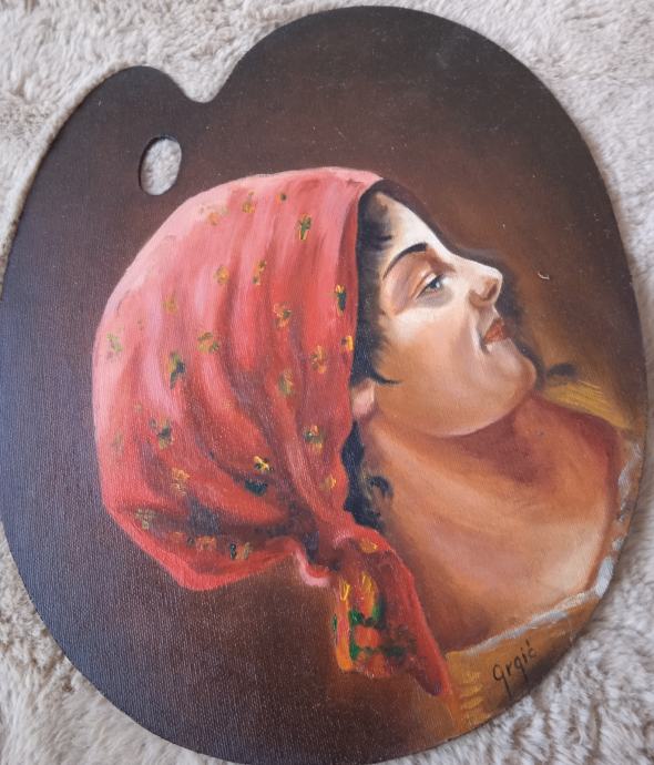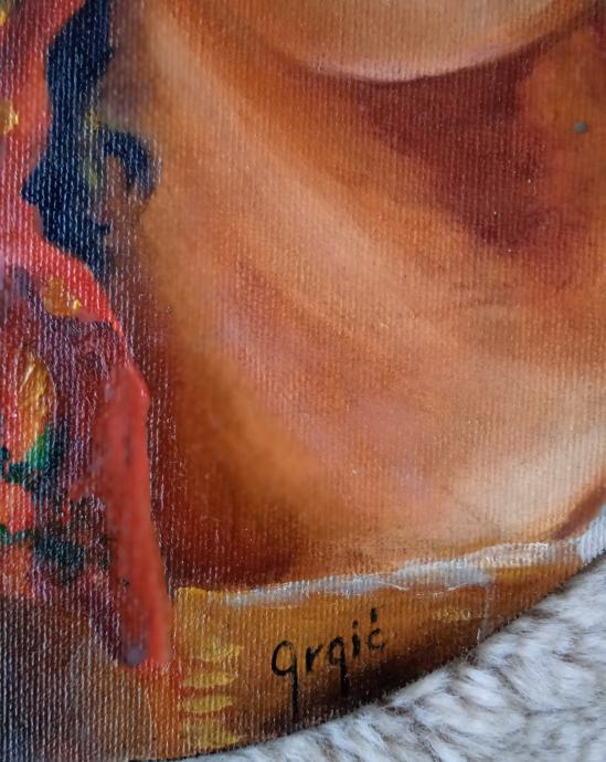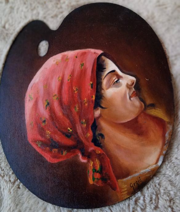 Predivan portret. Dimenzije 35x28 cm. Ulje na lesonitu. Potpis Grgić