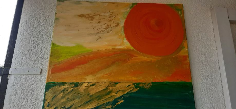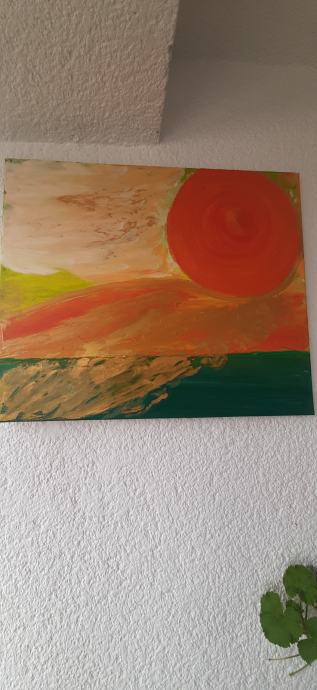 Umjetnička slika, ulje na platnu, Izlazak sunca. Dimenzije 50 cm x 60 cm.