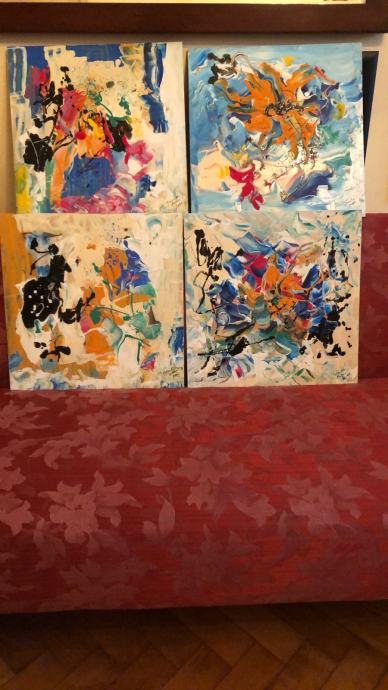 Prodajem umjetničke slike, akril na šperploči 4mm, pojedinačno ili kao diptih i triptih, cijena 200 kn. Dimenzije su 40x40.