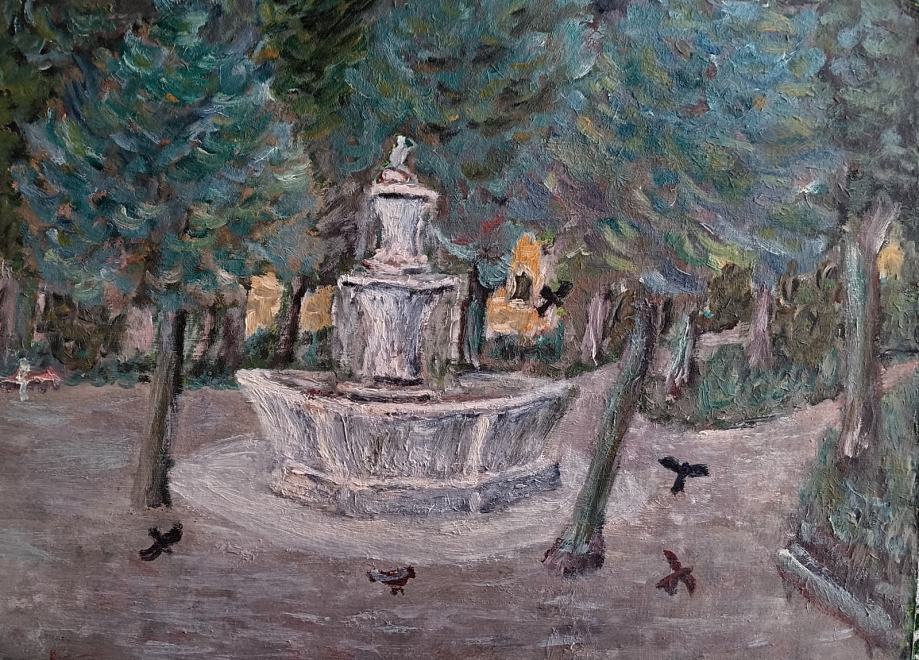 Splitski park Dzardin sa fontanom - ulje na kartonu , dim. 42 x 32 cm. Slika je iz '70 tih godina , bez potpisa.