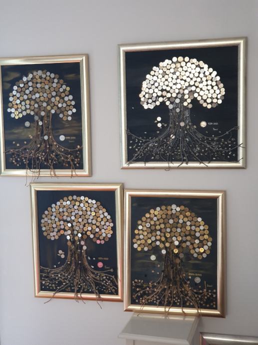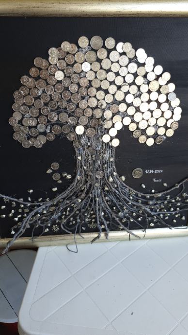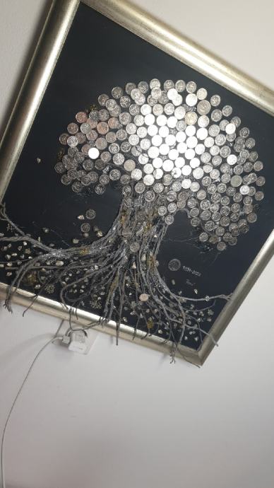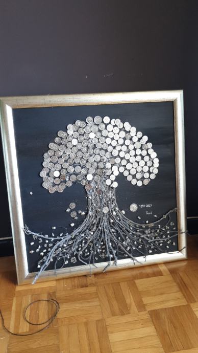 Na canvas platnu ,sa puno detalja,samo sa srebrenim kovanicama,predivna uspomena za buduce generacije.vl.50×50.bez okvira 100 a sa okvirom 140eura!
