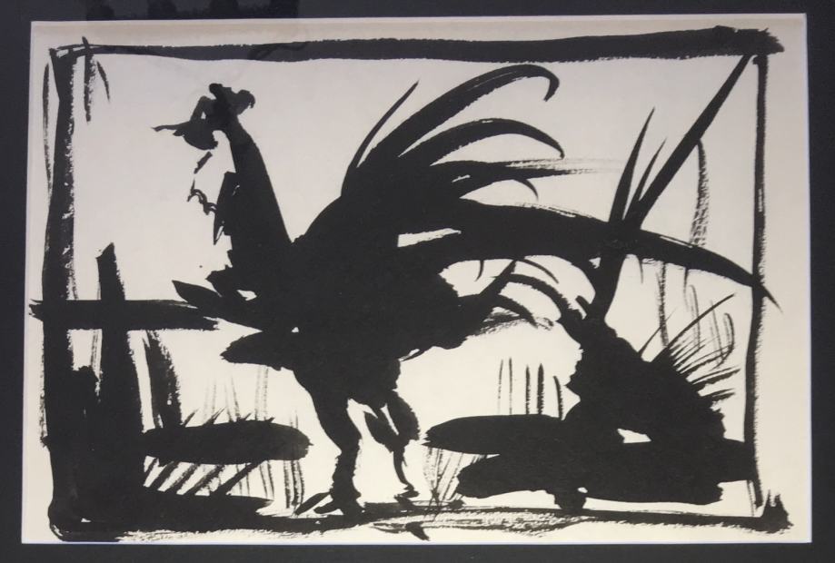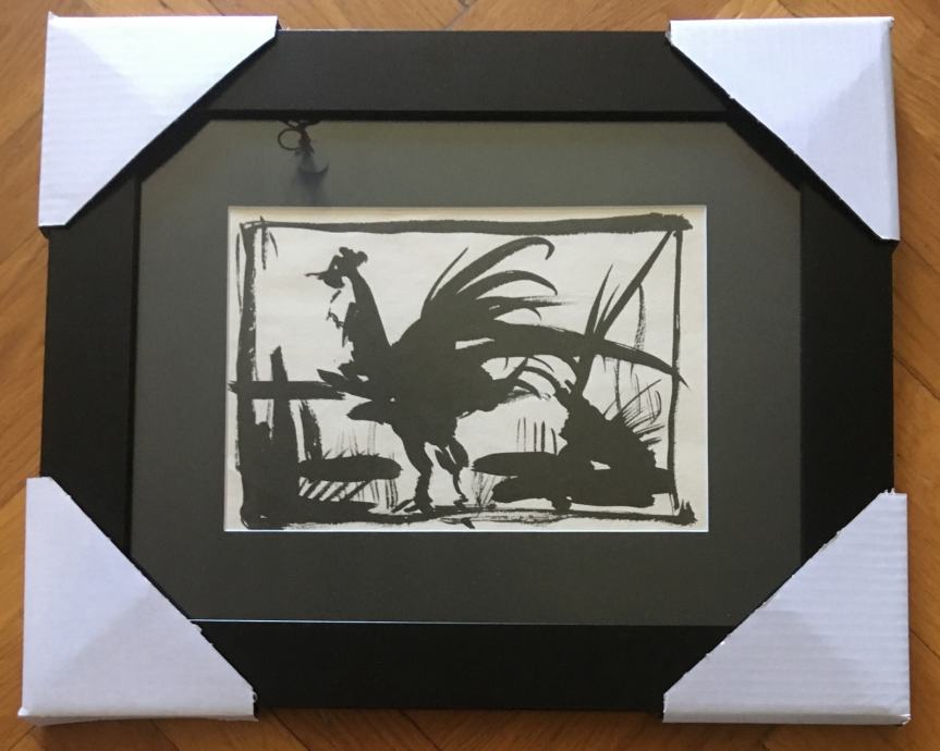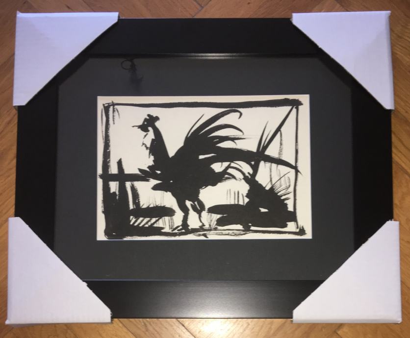Pijetao, crtež tušem čuvenog hrvatskog akademskog kipara i slikara Vanje Radauša. Galerijski novouokvireno i ostakljeno. Zaštitni kartoni na rubovima okvira. Dimenzije s okvirom 49x40cm (dimenzije unutar paspartua 28x19cm). Na papiru je vidljiv suhi žig "Radauš". Nije potpisano.
