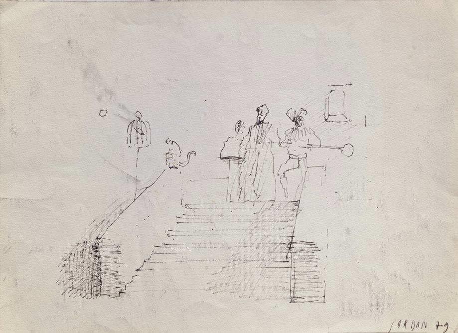 Vasilije Jordan "Mačka i kanarinac" skica kemijska olovka 30x40cm ;